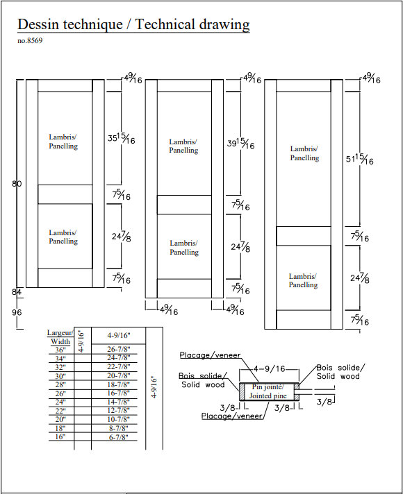 Hauteurs disponibles | 80 po, 84 po, 96 po |