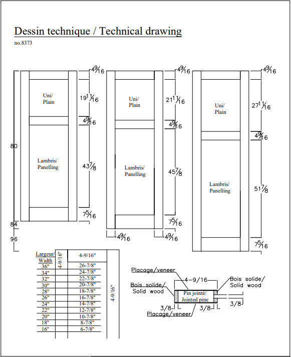 Hauteurs disponibles | 80 po, 84 po, 96 po |
