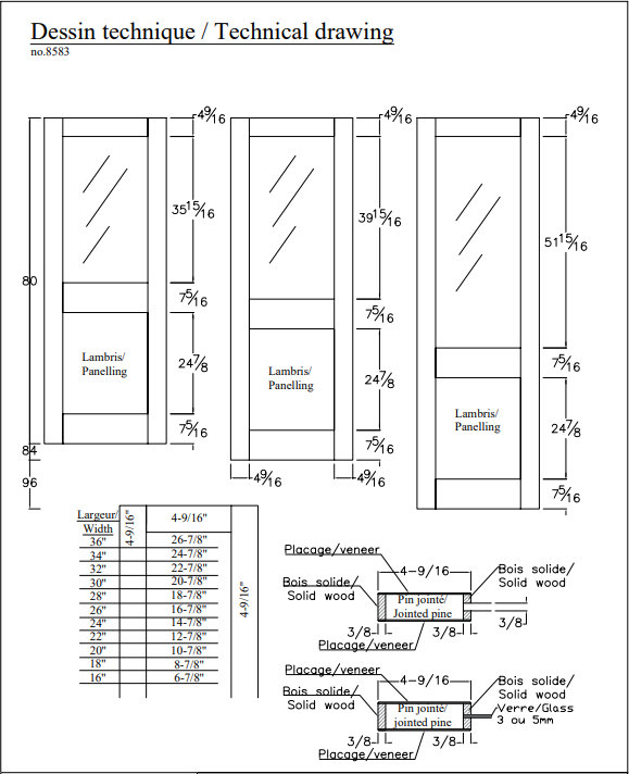 Hauteurs disponibles | 80 po, 84 po, 96 po |
